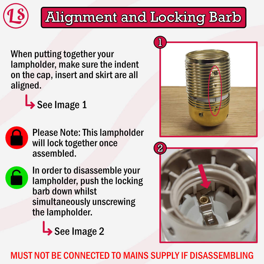 the lampholder or help with the alignment and locking barb, then scroll